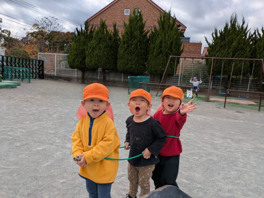 年少組さんの最初の給食のご飯はおにぎりでした。友だちと同じお弁当で嬉しそうな様子でした。デザートのぶどうゼリーを食べると「おいしい!」と満面の笑みを見せてくれました。