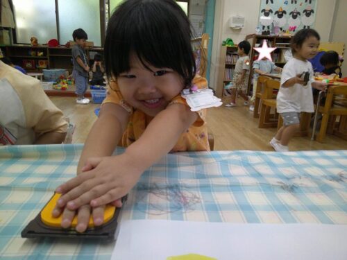 シールで目を付けると、どの子も「できた!」と嬉しそうでした♡