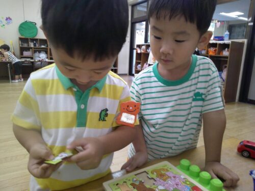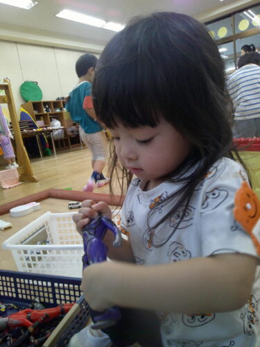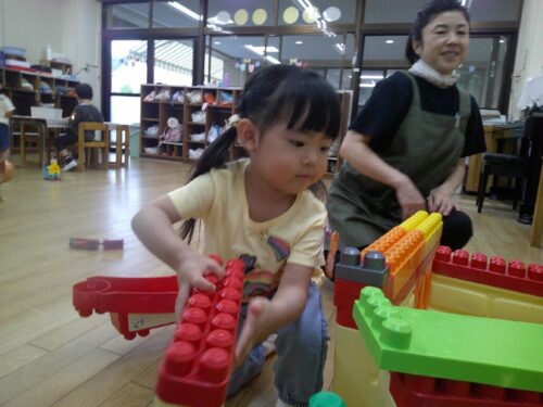 9月から新しいお友だちが5人仲間入りしました。子どもたちは自分の好きな遊びにお友だちや先生を