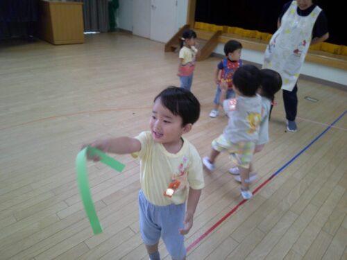 ホールでは、しっぽ取りゲームをして大盛り上がり!