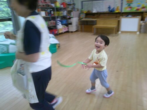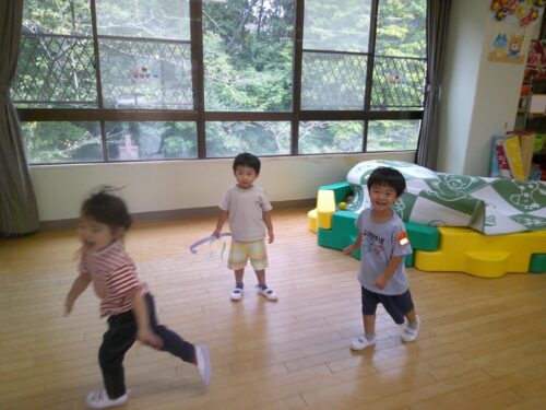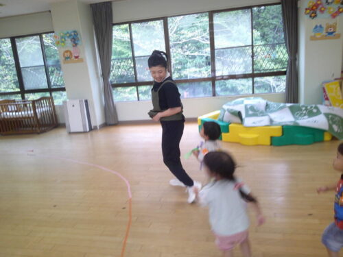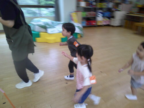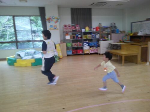 「まてまて~」と元気いっぱいに走り回り、捕まえる楽しさを感じながら遊びました。