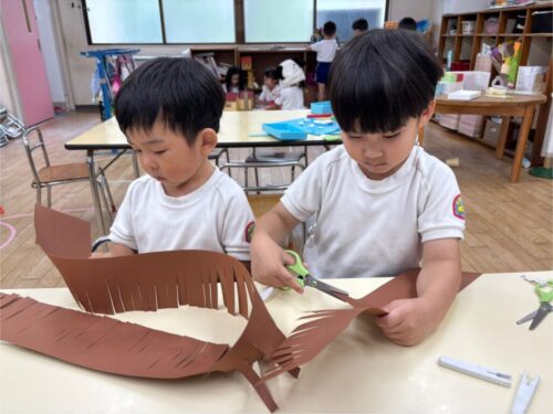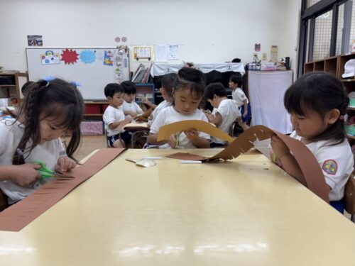 子どもたちが砂や泥遊びの中で楽しんでいる"ワイワイハワイ"をイメージして、当日使う用具を手作りしました🌴