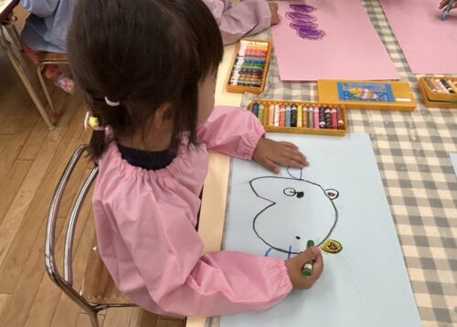 好きな食べ物、キャラクター、おうちの人、、、など様々な絵を描く姿がありました。