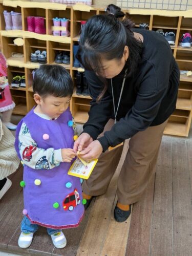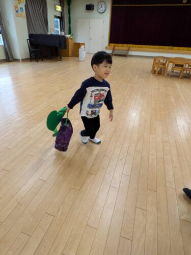 今回のバンビーノの主活動は芋掘りに行く予定でしたが、雨が降ってしまったので、予定を変更して幼稚園探検と芋掘りごっこをしました。