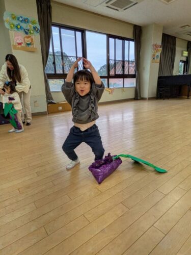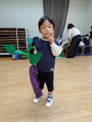 お芋掘りごっこを楽しんでくれて、「いも!!」と元気に言いながら、さつま芋ポーズを見せてくれました😊