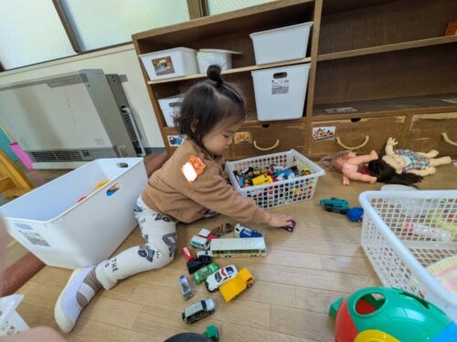 初めて見るおもちゃに大興奮で、すぐに遊びだしてくれる子や、保護者の方と離れて幼稚園で過ごすということで、不安を感じて涙を見せる子もいましたが、少しずつ、おもちゃや遊具に興味をもち、遊ぶうちに笑顔が見られ、嬉しかったです。