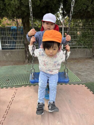 園庭では滑り台、ブランコ、砂場などで遊ぶことを楽しんでいました♫