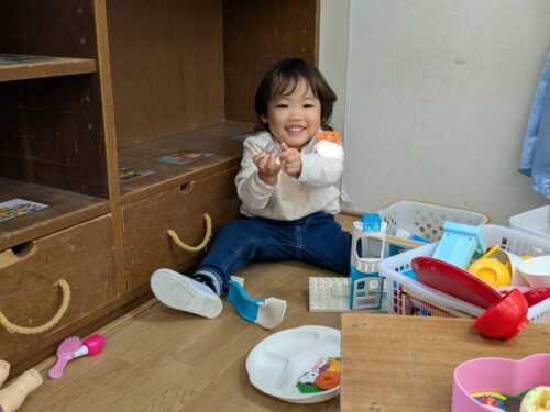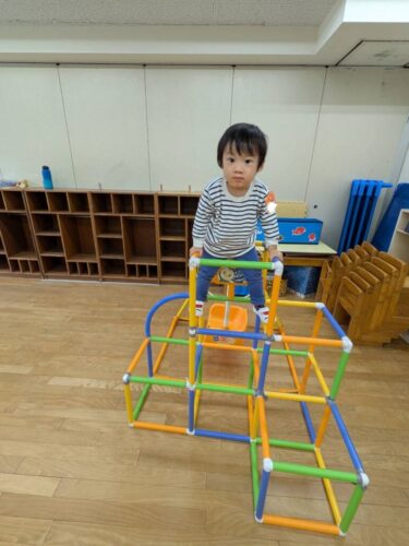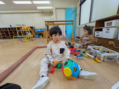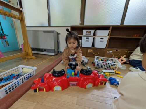 初めて見るおもちゃに大興奮で、すぐに遊びだしてくれる子や、保護者の方と離れて幼稚園で過ごすということで、不安を感じて涙を見せる子もいましたが、少しずつ、おもちゃや遊具に興味をもち、遊ぶうちに笑顔が見られ、嬉しかったです。