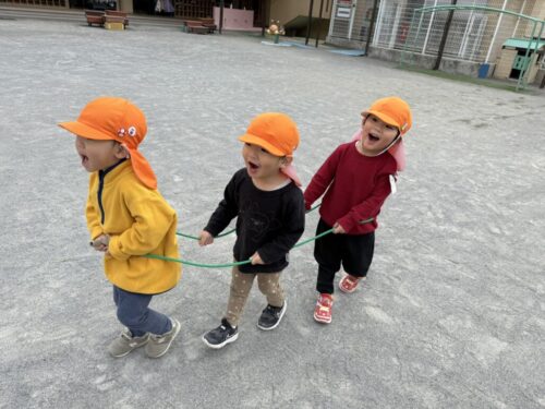 お友だちと一緒に電車ごっこを楽しんでいます🚃