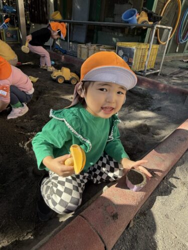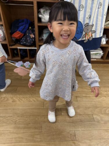 お友だちや保育者と一緒に身体を使って遊ぶことを少しずつ楽しんでいるのでこれからも、のびのびと遊べる時間を作っていきたいです!