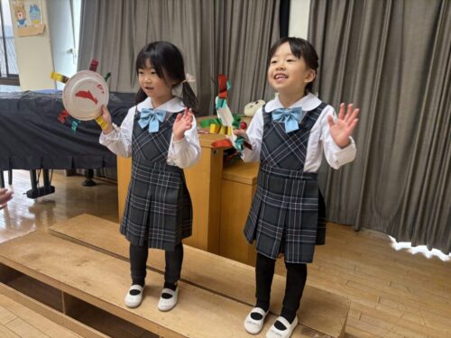 紙皿フリスビーで遊び始めたら、フリスビーがタンバリンになって発表会ごっこが始まったり、カッパに変身したり・・・みんなの発想の豊かさに私たちもワクワクします♬