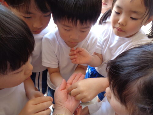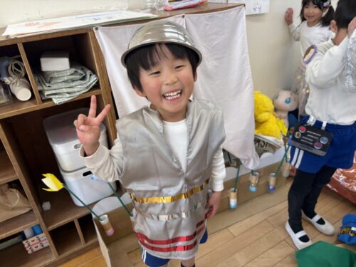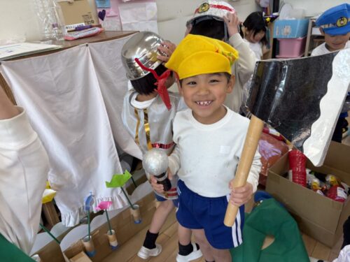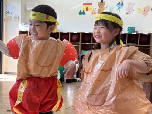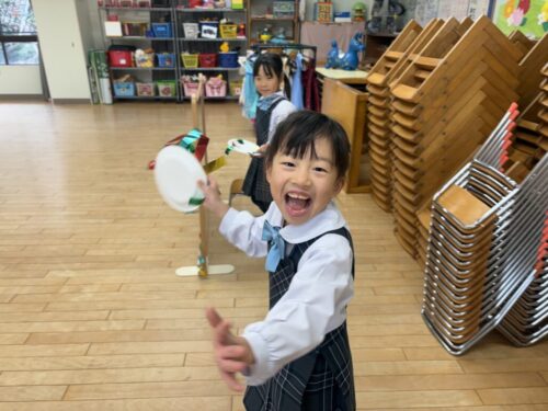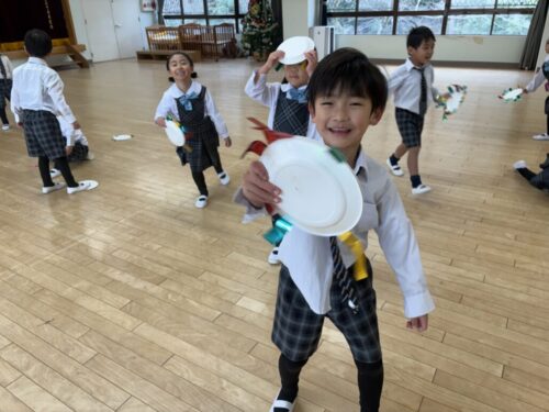 紙皿フリスビーで遊び始めたら、フリスビーがタンバリンになって発表会ごっこが始まったり、カッパに変身したり・・・みんなの発想の豊かさに私たちもワクワクします♬