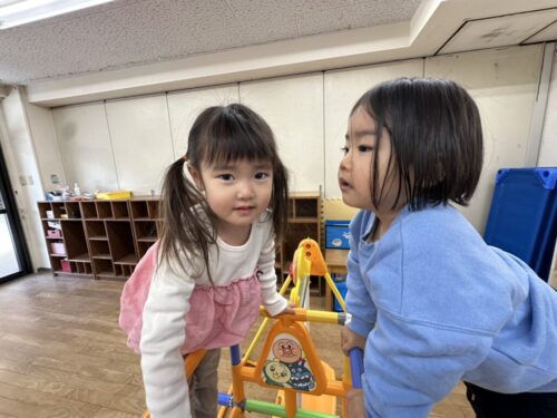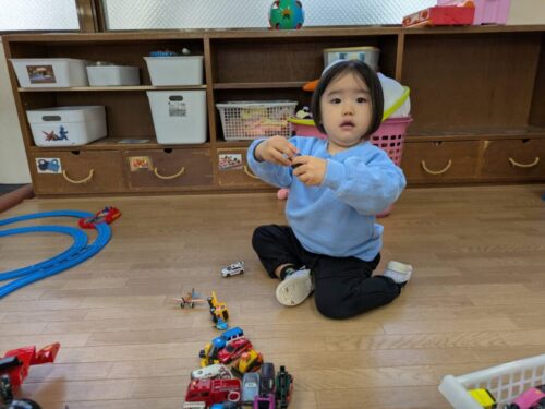 今週、4回目のならし保育がありました。入室時に不安そうだったお子さまも、玩具見ると、すぐに遊び始めてくれました。