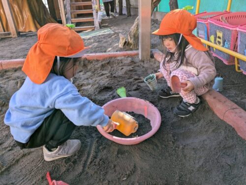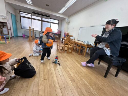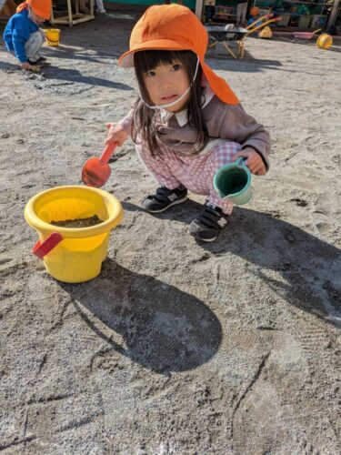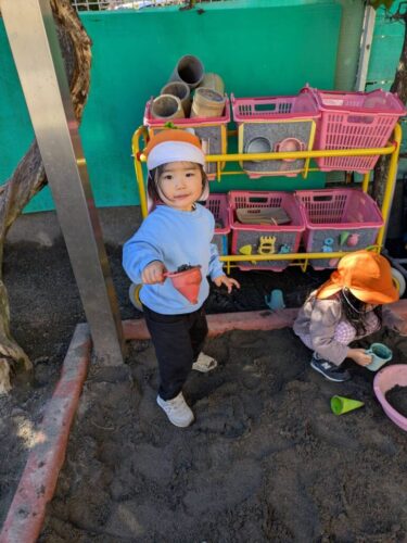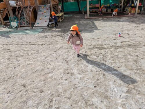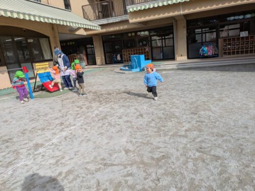 「早くお外に行きたい!」という声があったので、今日は早めにお片付けをして、園庭で遊ぶことに