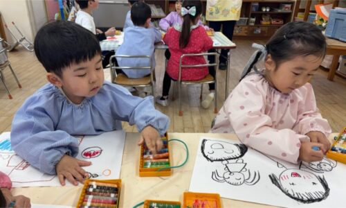 【年中組】好きな絵と自分の顔を描きました🖍️