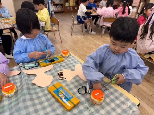 来週のなかよし展では今回描いた好きな絵や自分の顔だけでなく、1年間で作ってきた子ども達の様々な作品を飾ります。ぜひお楽しみに♪