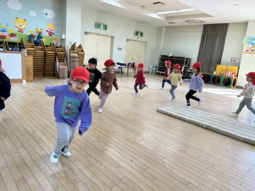 先生の声に合わせて走ったり、止まったり…