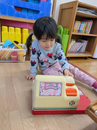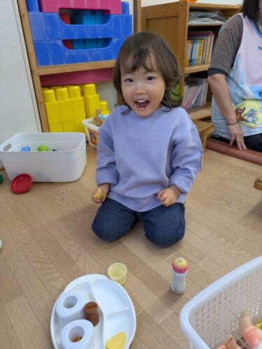 前回のならし保育から1か月ほど間が空きましたが、どの子も幼稚園のこと覚えていてくれたようで、入室後から笑顔で好きな遊びを楽しんでくれました。