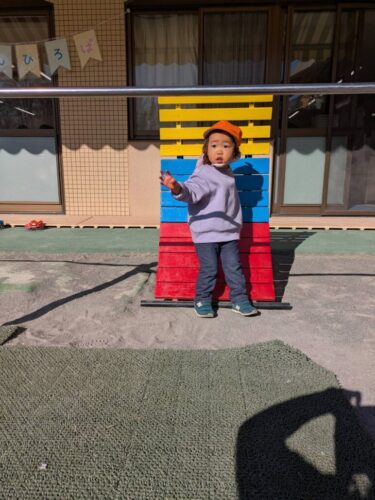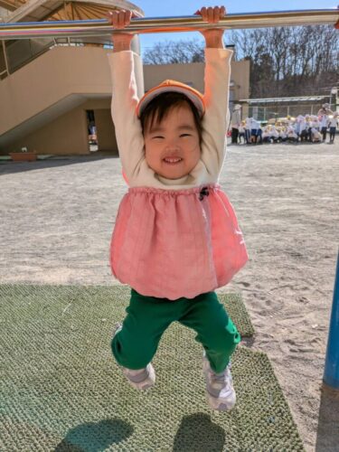 作ったお面を使って「いないいないばあ!!」をしたり、鉄棒にぶら下がって「みてみて!」と呼んでくれたりとかわいい姿が満載でした♡