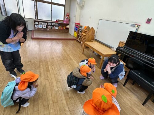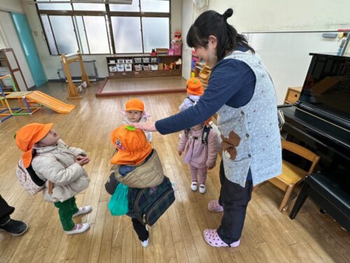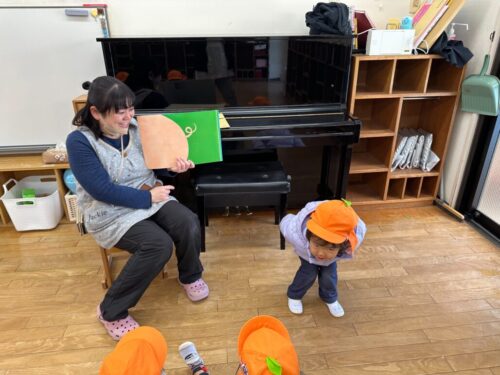 沢山遊んだ後は、みんなで手遊びと絵本を楽しみました。