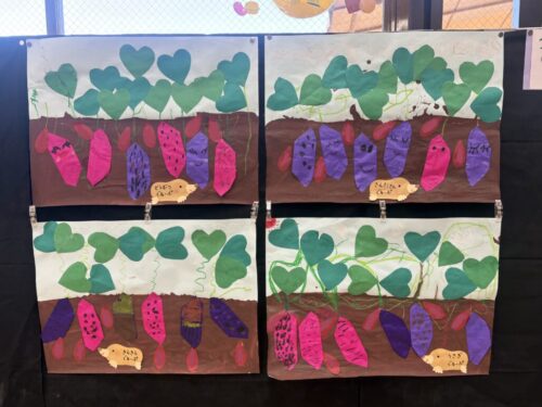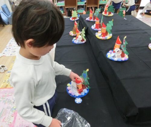 みんなで話し合いをして進めてきた作品展。年長さんになって、自分たちで工夫したり、協力したりすることが本当に上手になりました。できることが増えたので、表現の幅が広がり、自分たちのイメージに近づけることができました。