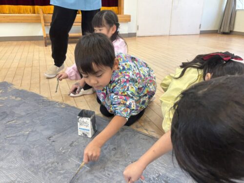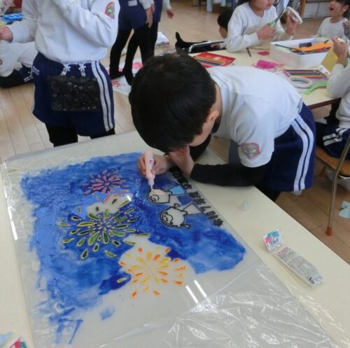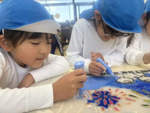 卒園記念制作のステンドグラスは、細かい作業だったので、息を止めて集中する子がたくさんいました。