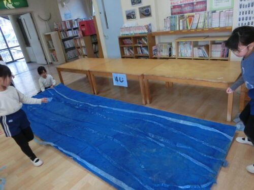 できあがって、子どもたちの前で裏側のビニールを剥がすと透明感が増したので、大歓声が上がりました!