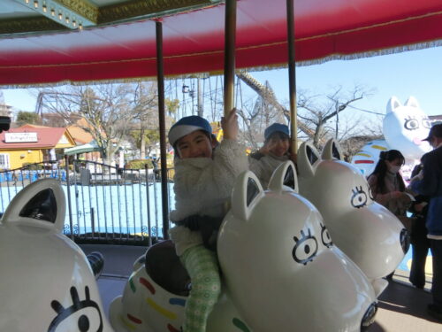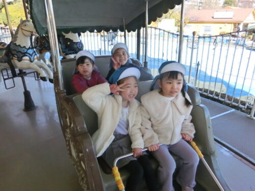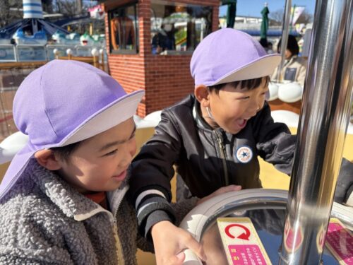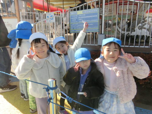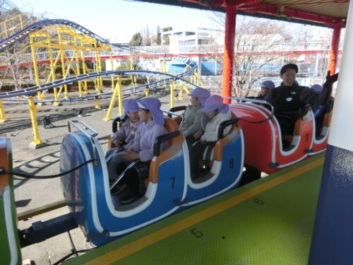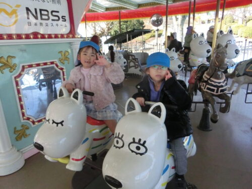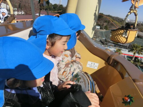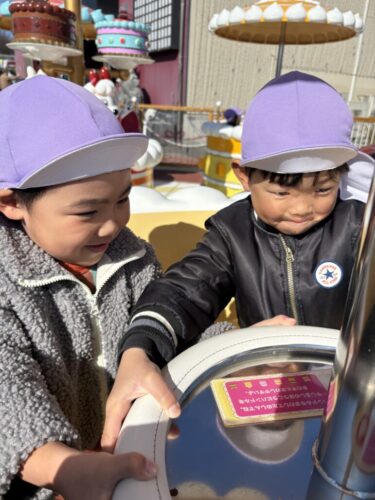 アシカショーの後は帰る時間…と思っていましたが、今年度はもう1つ乗り物に乗れましたり!子どもたちに乗れることになったことを伝えると「やったー!」「嬉しい☺」と言って最後1つの乗り物を友だちと一緒に楽しんでいました。