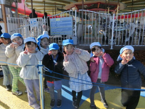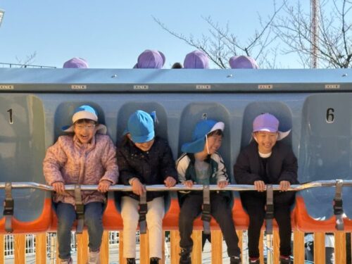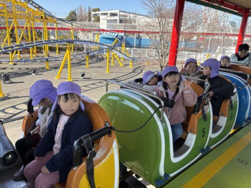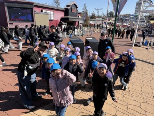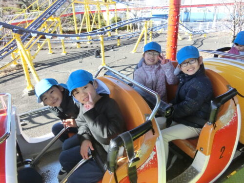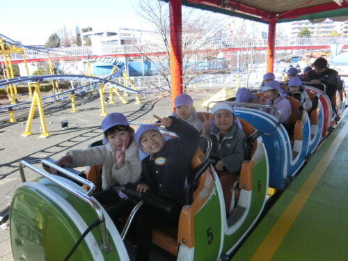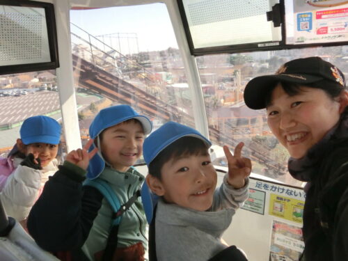 作品展が終わってすぐにお別れ遠足がありました。昨年は【あそびマーレ】に行ったことを思い出している子も多く、今年度は【よみうりランド】に行くことを伝えるととても楽しみにしていました。
