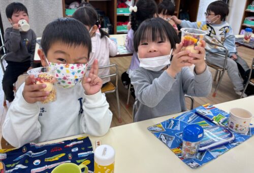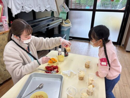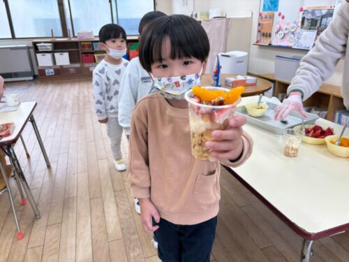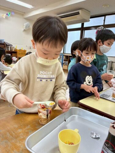 1年間がんばったごほうびに、パフェづくりをしました🎵