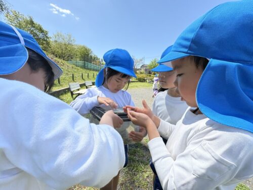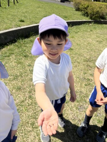ダンゴムシがたくさんいて、「いっぱい集められる~!」と喜んで捕まえていました(笑)