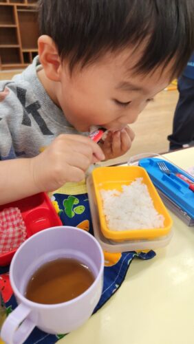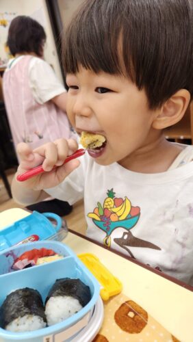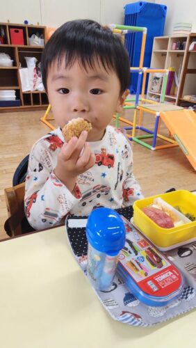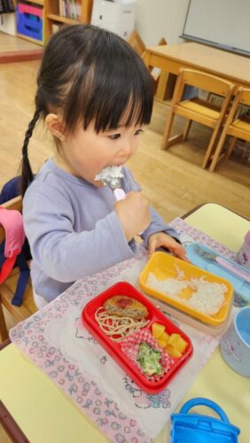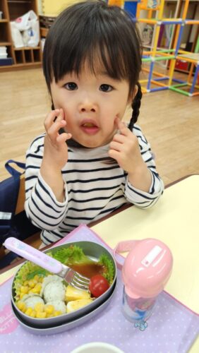 今までママが作ったお弁当だったので、戸惑うかな。。。と心配していましたが、子どもたちはスムーズに食べ始めていました❣