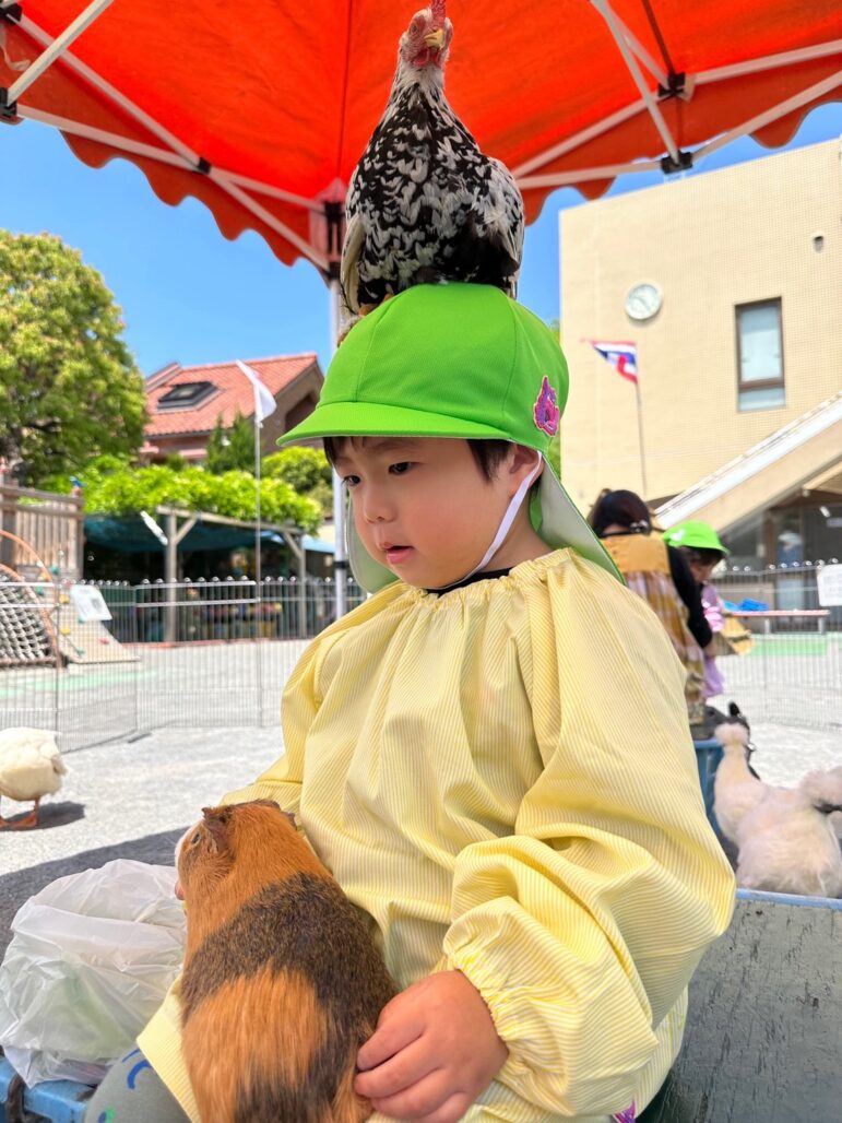 幼稚園にたくさんの動物たちが遊びに来て、触れ合って遊ぶことができます🐰